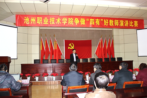 根据院党委关于开展争做四有好教师主题教育活动的通知精神,为了组织广大教师深入学习好习近平总书记在第30个教师节重要讲话,进一步加强师德师风建设,激发广大教师投身教育改革的积极性、主动性和创造性,展示广大教师爱岗敬业、无私奉献、教书育人、为人师表的精神风貌。院工会于12月3日下午举行了争做四有好教师演讲比赛。院纪委书记程峥平,院党委委员、副院长孙垚等出席了演讲比赛。