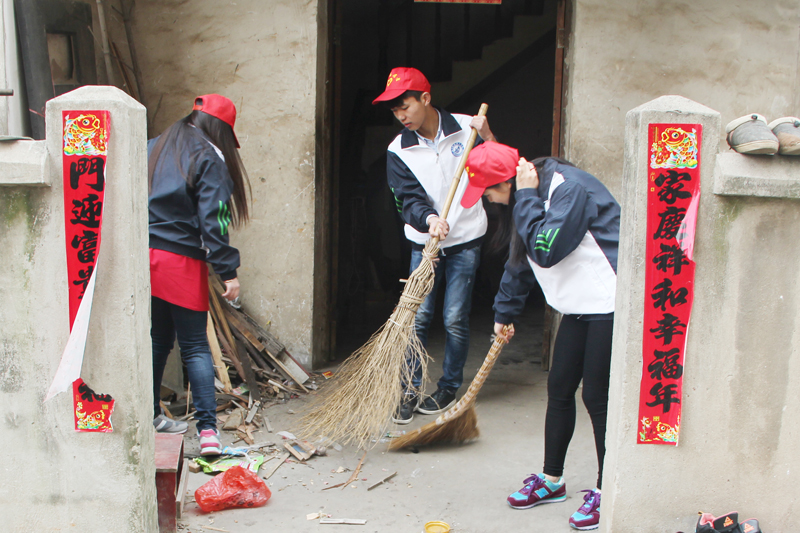 志愿者们帮老人打扫卫生