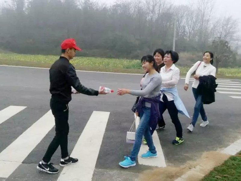 上午7:00左右,志愿者们抵达杏花村文化旅游区北村口,首先熟悉了赛点,随后前往梅洲晓雪、杏花岭两个点等待健步走参赛人员的到来,并为比赛人员指路和发放饮用水。
